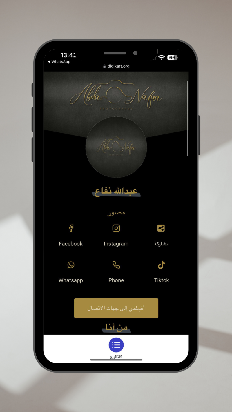 تعد بطاقة الأعمال الرقمية DigiKart الطريقة المثالية لتقديم نفسك بطريقة احترافية وجذابة. بفضل تصميمها الأنيق وواجهتها سهلة الاستخدام، تسهل DigiKart مشاركة معلومات الاتصال الخاصة بك وروابط الوسائط الاجتماعية وموقع الويب مع العملاء المحتملين.